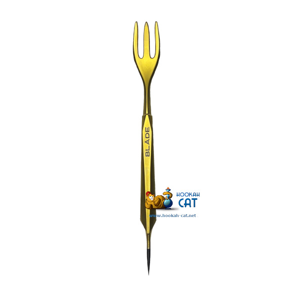 Шило - Вилка для табака Blade Hookah Matte Gold Матовая (Блейд Хука) - новинка, которая впервые была представлена на выставке Hookah Club Show в 2021 году! Очень удобный аксессуар, который включает в себя сразу два: шило и вилку (что собственно и следует из названия). Обращаем внимание, что шило очень острое, поэтому с ним поаккуратнее ;)