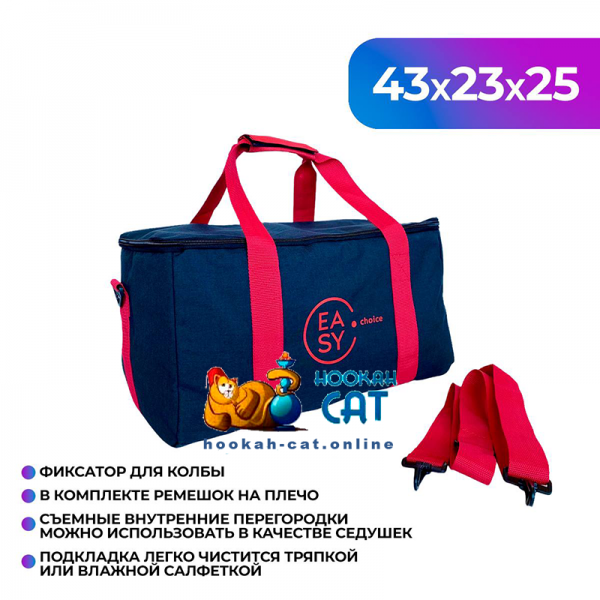 Сумка для кальяна Easy Choice Черная Красная - стильная, удобная и очень вместительная сумка. Внутри сумки очень много кармашков, чтобы вы могли комфортно разложить аксессуары для кальяна. А отдел для колбы идет со специальным фиксатором для горлышка. Ее легко почистить обычной тряпочкой или влажной салфеткой.
