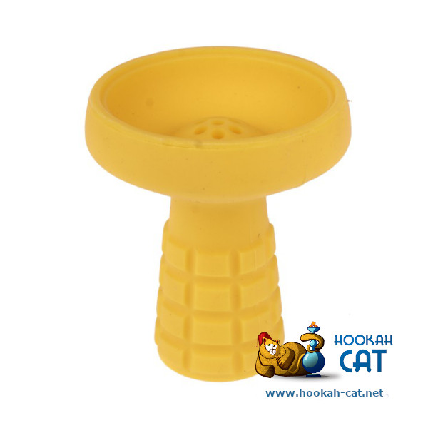 Чаша для кальяна силиконовая Hype Grenade Yellow (Хайп Граната Желтая) - силиконовая черная чаша с характерным узором осколочной рубашки гранаты на ножке. Хороший и качественный силикон - тверже чем другие китайские чаши, и меньше плавится.