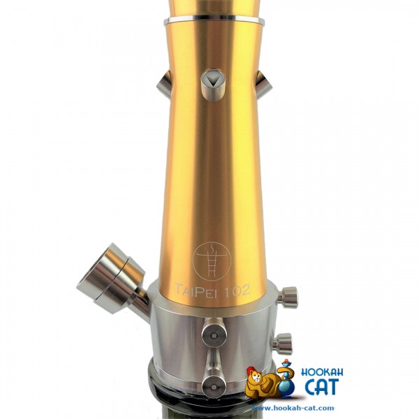 Кальян ArTowers TaiPei 102 Gold (АрТауэрс ТайПей 102 Золотой Полный Комплект) - уникальный в своем роде кальян, который вобрал в себя все основные узнаваемые черты знаменитого небоскреба ТайБей 101 в г. Тайбей Тайвань, и вплоть до миллиметра повторяет его пропорции. Изготовлен из высококачественных экологически безопасных материалов: Башня (декоративна внешняя часть шахты), блюдце, центральная часть мундштука (в цвет самой башни) - алюминий 6063 + цветное анодирование, в данном случае богатый и насыщенный золотой цвет. Все взаимодействующие с водой детали - нержавеющая сталь AISI 304. Декоративные светящиеся элементы (да, он даже светится!) - пластик PLA + люминисцентный пластик.