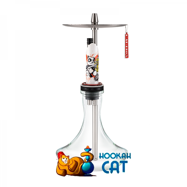 Основание и погружная часть выполнены в виде иглы тату машинки. На блюдце изображение гранаты, а на шахте красуется панда.