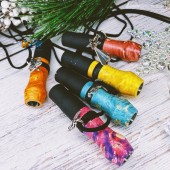 Помимо классной расцветки дерева, у каждого аксессуара есть маленькая подвеска, на любой вкус и цвет, и прочная веревочка из кожи. Полистай фотки, посмотри, какие они клевые