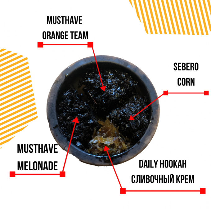 Миксы для кальяна - Нежная кукурузка (MustHave Melonade, MustHave Orange Team, Sebero Corn, Daily Hookah Сливочный Крем)