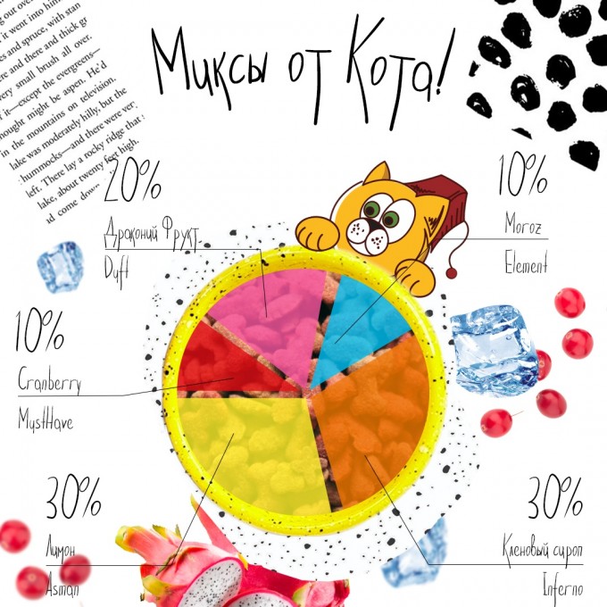 Миксы для кальяна - Сладкое наслаждение (Asman Ferghana Lemon, Inferno Кленовый сироп, Duft Dragon Fruit, Element Moroz, Musthave Cranberry)