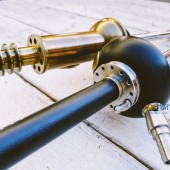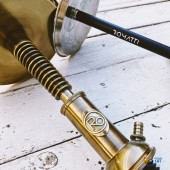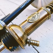 Его же брат "Motor", напротив, брутальный и независимый, само воплощение слова Стимпанк. Сделан он в виде автомобильного радиатора и изготовлен из латуни, сама шахта кальяна выполнена из нержавеющей стали.