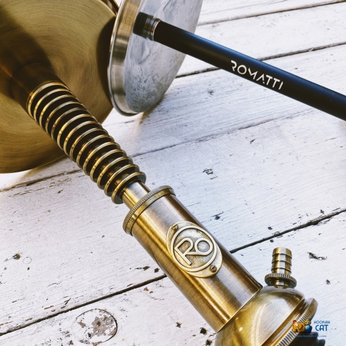 Romatti - более классическая модель в чёрном матовом цвете. Шахта этого кальяна выполнена из нержавеющей стали, а основание из полиацеталя, алюминия и вставками из латуни. Ничего лишнего. Стильно и броско.