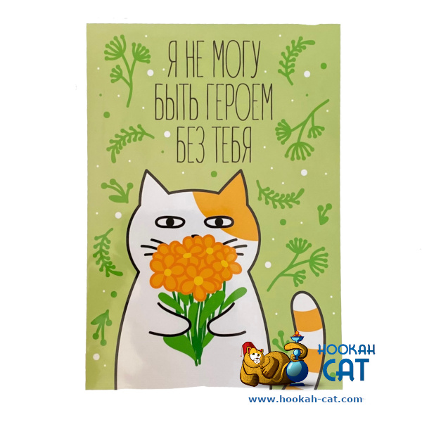 Открытка КОТКА - Я Не Могу Быть Героем Без Тебя - если вы решили купить у нас подарок вашим близким, то можно не тратить время на поиски открытки, а сразу взять ее у нас! Теперь у Кальянного Кота есть такие красивые и смешные открытки созданные прекрасной художницей Ариной Родина! На самом деле, чтобы их дарить повод даже не нужен ;)