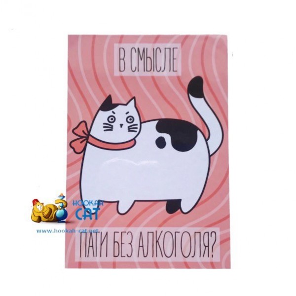 Открытка КОТКА - В Смысле Пати Без Алкоголя - если вы решили купить у нас подарок вашим близким, то можно не тратить время на поиски открытки, а сразу взять ее у нас! Теперь у Кальянного Кота есть такие красивые и смешные открытки созданные прекрасной художницей Ариной Родина! На самом деле, чтобы их дарить повод даже не нужен ;)