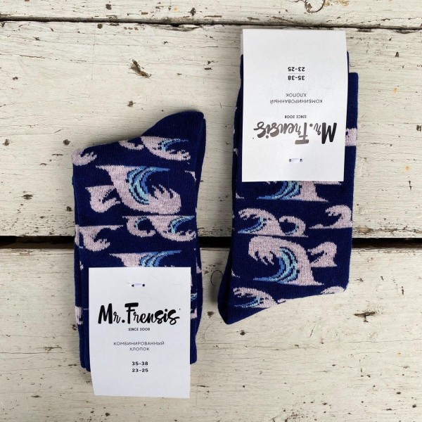 Носки женские Волны - у Кальянного Кота можно еще запастись носочками! Они выполнены из комбинированного хлопка, с мягкой резинкой и забавным рисунком - выбирай тот, что тебе нравиться - хвастайся друзьям и главное - держи свои лапы в тепле!